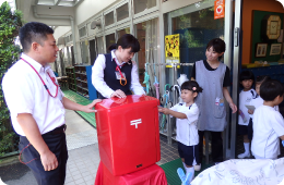 郵便局からポストが到着!おじいちゃん、おばあちゃんにハガキを送ります。